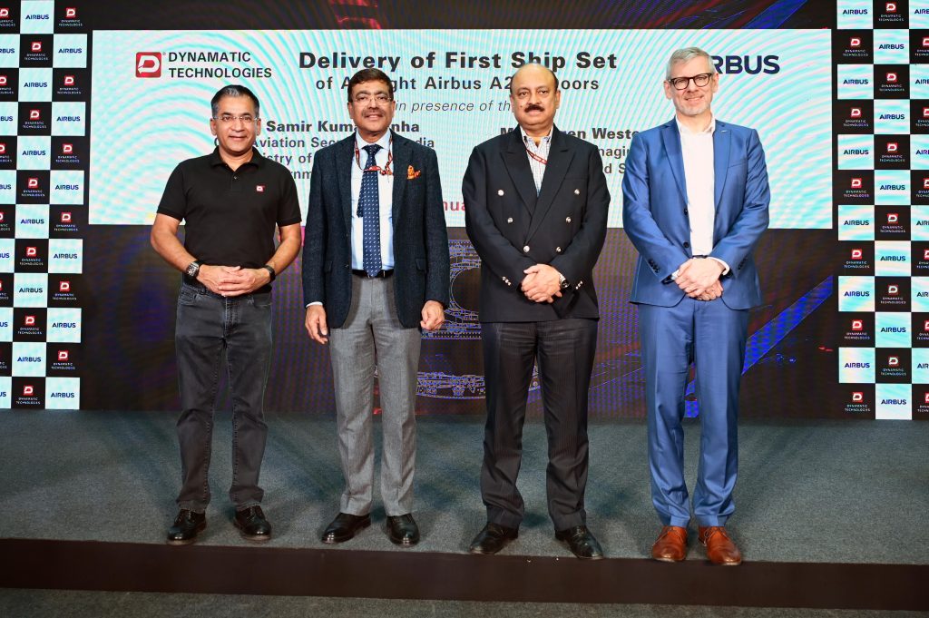 Shri Samir Kumar Sinha, Civil Aviation Secretary of India, Mr. Jürgen Westermeier, President and Managing Director, Airbus India and South Asia, Shri Piyush Srivastava, Senior Economic Advisor, and Dr. Udayant Malhoutra, CEO & Managing Director, Dynamatic Technologies Limited.